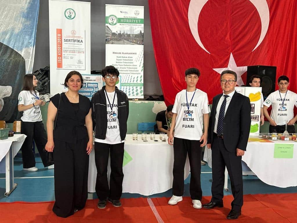 11. TÜBİTAK 4006/B Bilim Fuarı okulumuzda büyük bir çoşkuyla sergilendi. Fuarımızda 10 araştırma ve 10 tasarım projesi olmak üzere 20 adet proje görüşe açılmıştır. Ayrıca sergimizde 5 tematik alan bulunmakta olup, bunlar; 1 adet biyotaklit, 1 adet nanoteknoloji, 3 adet robotik ve kodlama, 7 adet steam, 8 adet çevre ve çevre koruma projelerini içermektedir. Fuarımıza İl Milli Eğitim Müdür Yardımcısı Bülent ALTINTAŞ; Mesleki Eğitim İl Koordinatörü Hakan BABAÇ; İlçe Milli Eğitim Şube Müdürlerimiz Hasan Ali TÜZEN, Mehmet TOKSOY, Asım BULUT; Rumelisiad Vakfı Başkanı Taner BOLCAN,Rumelisiad Meslek Edindirme Komisyonu Başkanı Gazanfer ÖZEN, Rumelisiad temsilcilerimiz Ertan GANİ,Beyhan MOLLA,Hasan AKBAŞ; Eğitim Bir Sen, Türk Eğitim Sen ve Genç Eğitim Sen’in değerli temsilcileri; Osmangazi Belediyesi Gazi Tarım Anonim Şirketi Genel Müdürü Arca ATAY; TÜBİTAK İl Sorumluları Şükrü BAYRAM, Feride Başak BAŞAR, Yasemin KIVRAK; Mesleki Eğitim ve Teknik Eğitim Müdürlerimiz; 6. Bölge Okul Müdürlerimiz; Rumelisiad üyesi Kanon Otomatik Kapı Sistemleri temsilci yetkilileri katılım sağlamışlardır. Katılımlarından dolayı kendilerine teşekkür ediyoruz.
