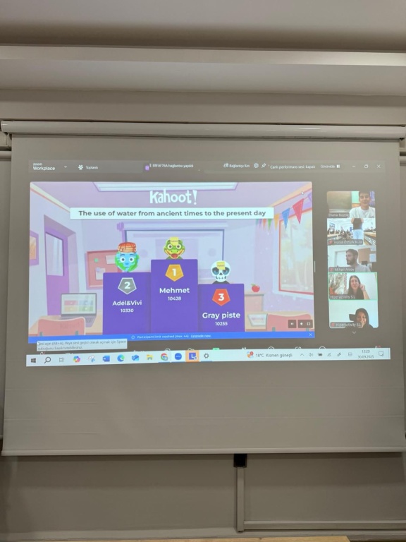 Toplantı kapsamında proje ortakları, yürüttükleri çalışmaları Pixton etkinliği aracılığıyla sunmuş; ardından düzenlenen Kahoot etkinliği ile etkileşimli bir ortam oluşturulmuştur.